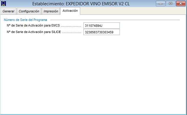 Si no introducimos los Números de Serie de Activación para un establecimiento, el Programa de Ayuda EMCS/SIANE/SILICIE permitirá trabajar con el programa, e incluso crear documentos para ese establecimiento, pero no permitirá preparar mensajes EDI/XML ni comunicar los mismos a la A.E.A.T.